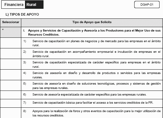 La Financiera Rural brindará los siguientes apoyos y servicios de capacitación, asesoría y consultoría.