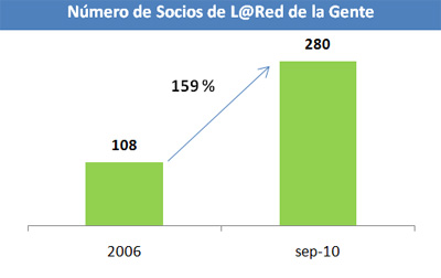 Al tercer trimestre de 2010, el número de socios de L@Red de la Gente es de 280, esto es 159% más que los que se tenían en 2006.